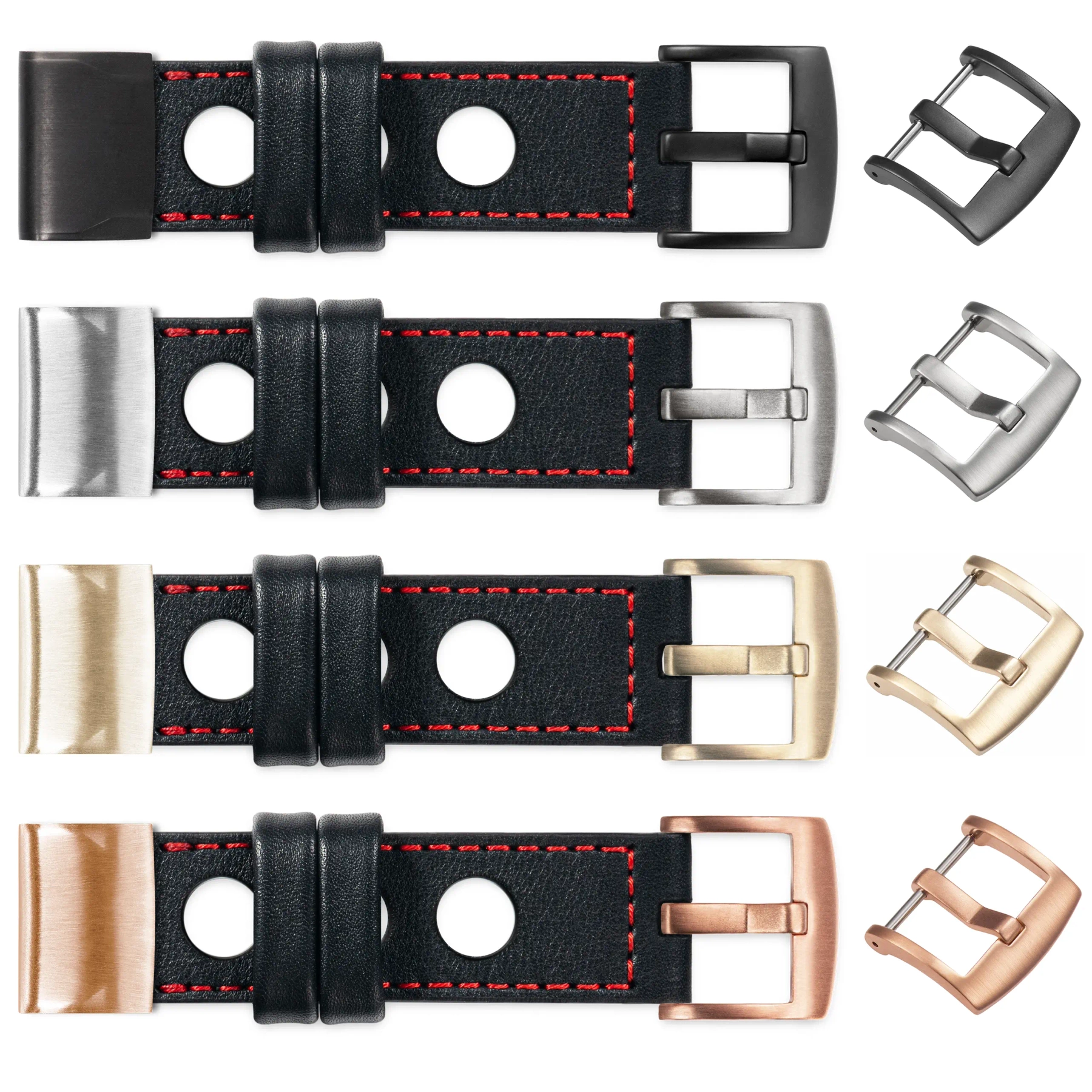 Wykonujemy wysokiej jakości skórzane paski do Garmin QuickFit 26mm (Fenix / Epix / Quatix / Tactix / Enduro - 51mm) w wielu różnych konfiguracjach. Jeżeli domyślna klamra (Czarny) w pasku Prestige R1 wymaga zmiany na inny kolor - oferujemy następujące opcje: