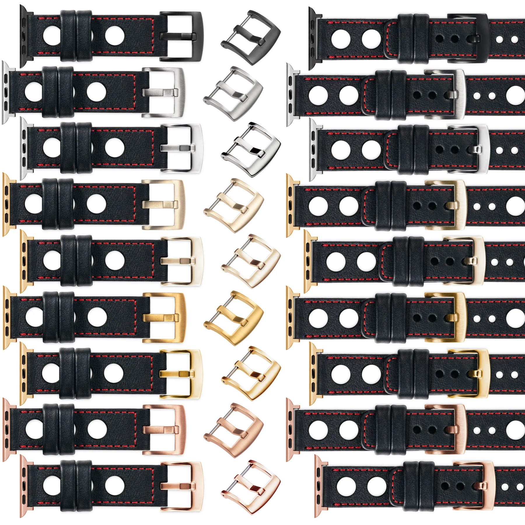 Wykonujemy paski do Apple Watch w wielu różnych konfiguracjach. Jeżeli domyślna klamra i adapter (Srebrny) wymaga zmiany na inny kolor - oferujemy następujące opcje:
