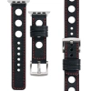 moVear Prestige R1 | Skórzany pasek 24mm do Apple Watch 10 / 9 / 8 / 7 / 6 / 5 / 4 / SE (46/45/44mm) & Ultra (49mm) | Czarny, eleganckie przeszycie kolor Czerwony
