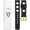 moVear Prestige R1 (Rally) Skórzany pasek 20mm do zegarka / smartwatcha | Czarny, eleganckie przeszycie kolor Złoty