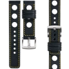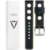 moVear Prestige R1 (Rally) Skórzany pasek 20mm do zegarka / smartwatcha | Czarny, eleganckie przeszycie kolor Żółty
