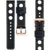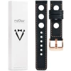 moVear Prestige R1 (Rally) Skórzany pasek 24mm do zegarka / smartwatcha | Czarny, eleganckie przeszycie kolor Różowe złoto