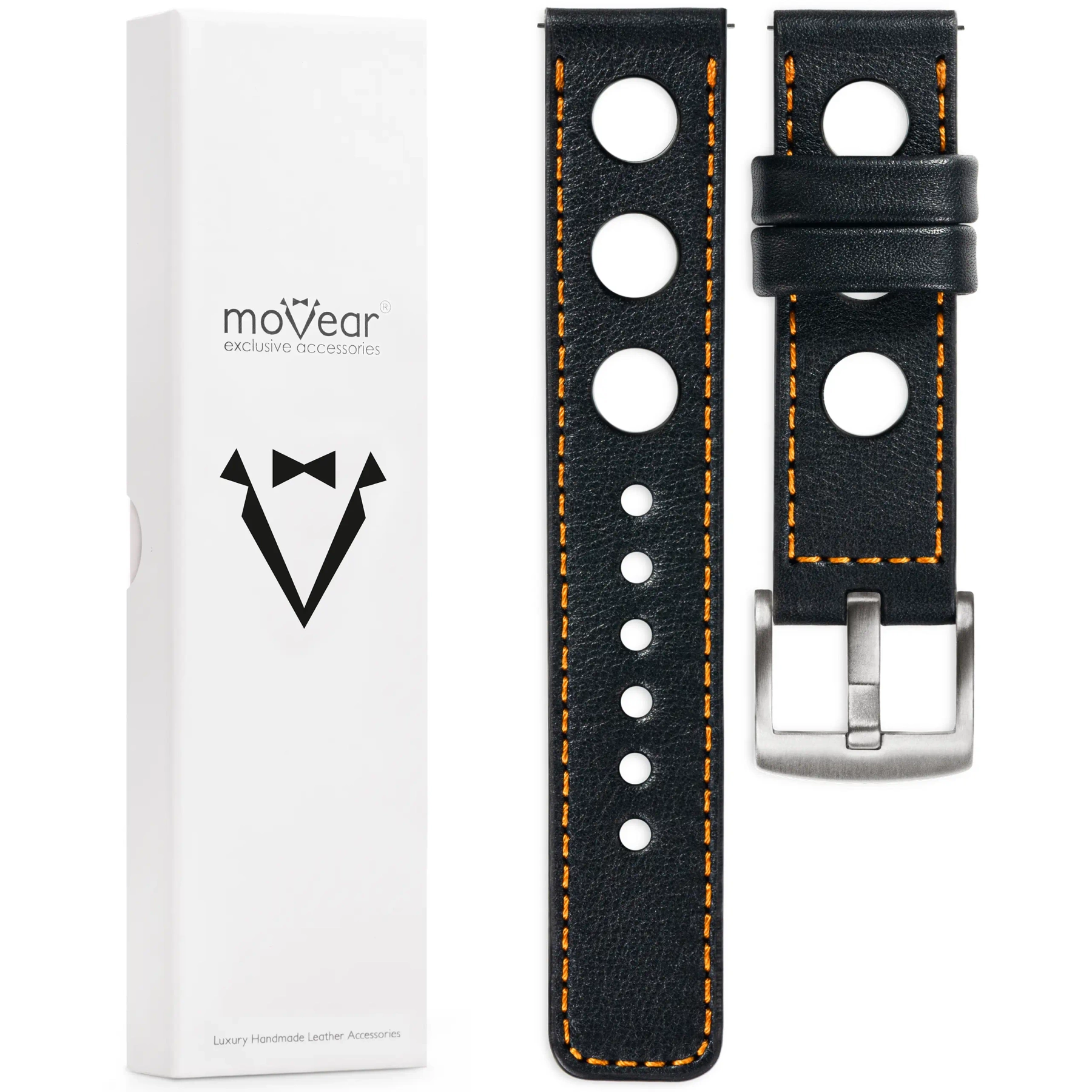 - 1 szt. moVear Prestige C1 - Skórzany pasek szerokości mocowania 22mm, kolor paska Czarny, przeszycie Pomarańczowy