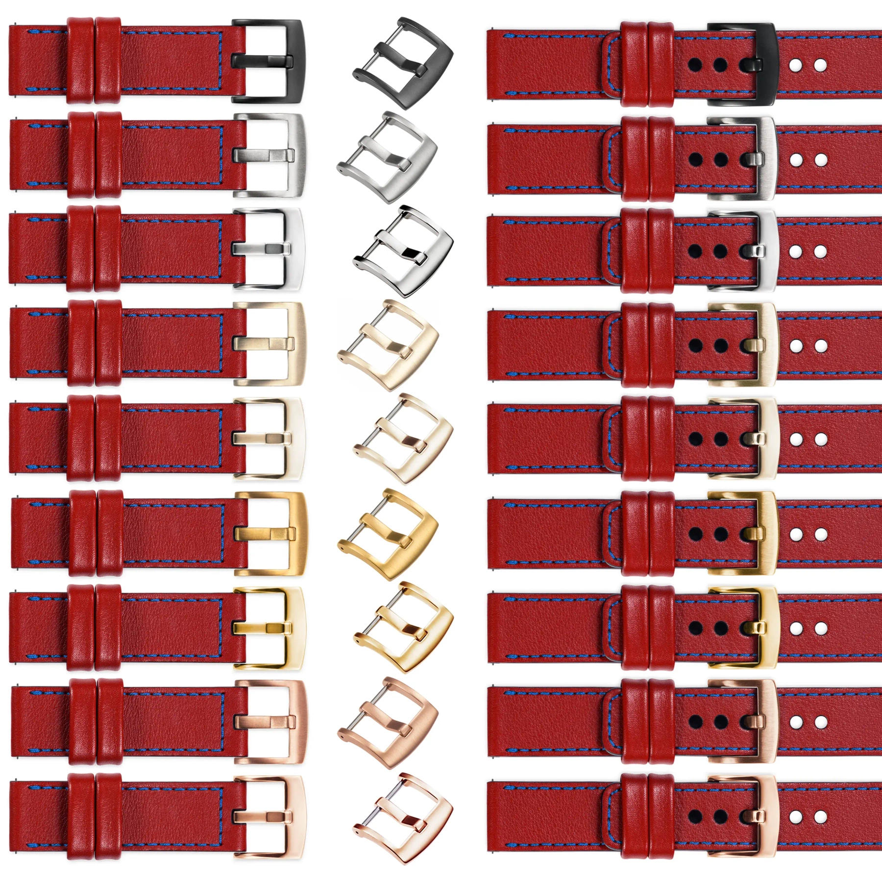 - 1 szt. moVear Prestige C1 - Skórzany pasek szerokości mocowania 26mm, kolor paska Czerwony szkarłatny, niebieskie przeszycie