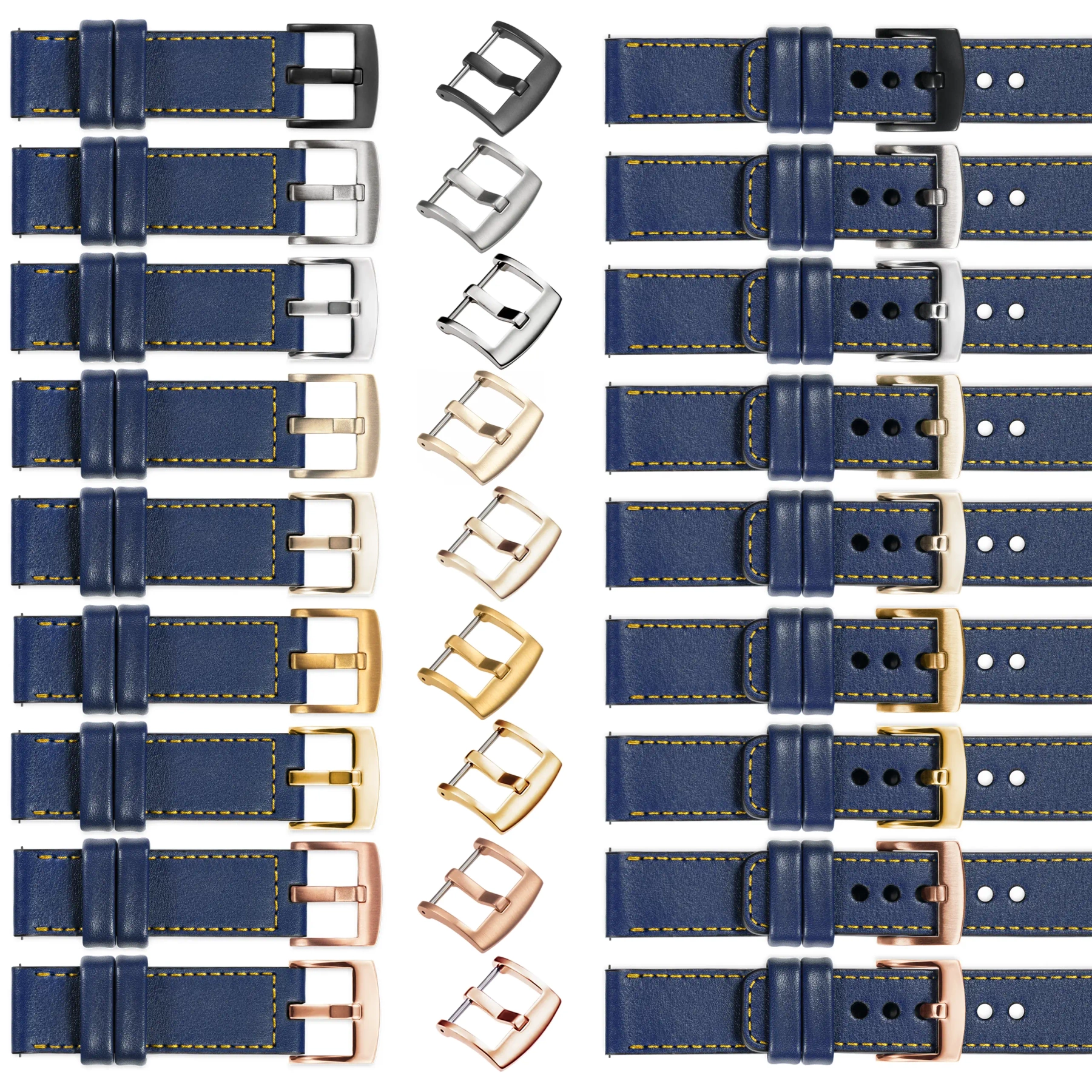 moVear Prestige C1 Skórzany pasek 26mm do zegarka / smartwatcha | Granatowy, eleganckie przeszycie kolor Żółty