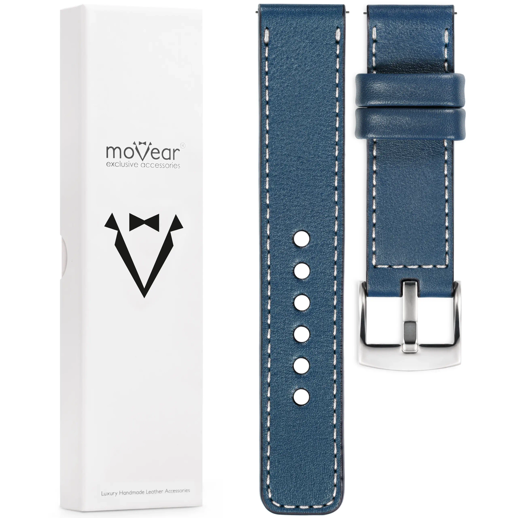 - 1 szt. moVear Prestige C1 - Skórzany pasek szerokości mocowania 26mm, kolor paska Niebieski jeans, białe przeszycie