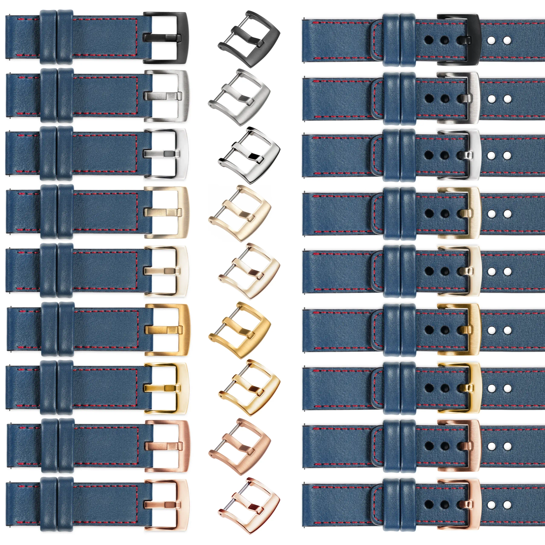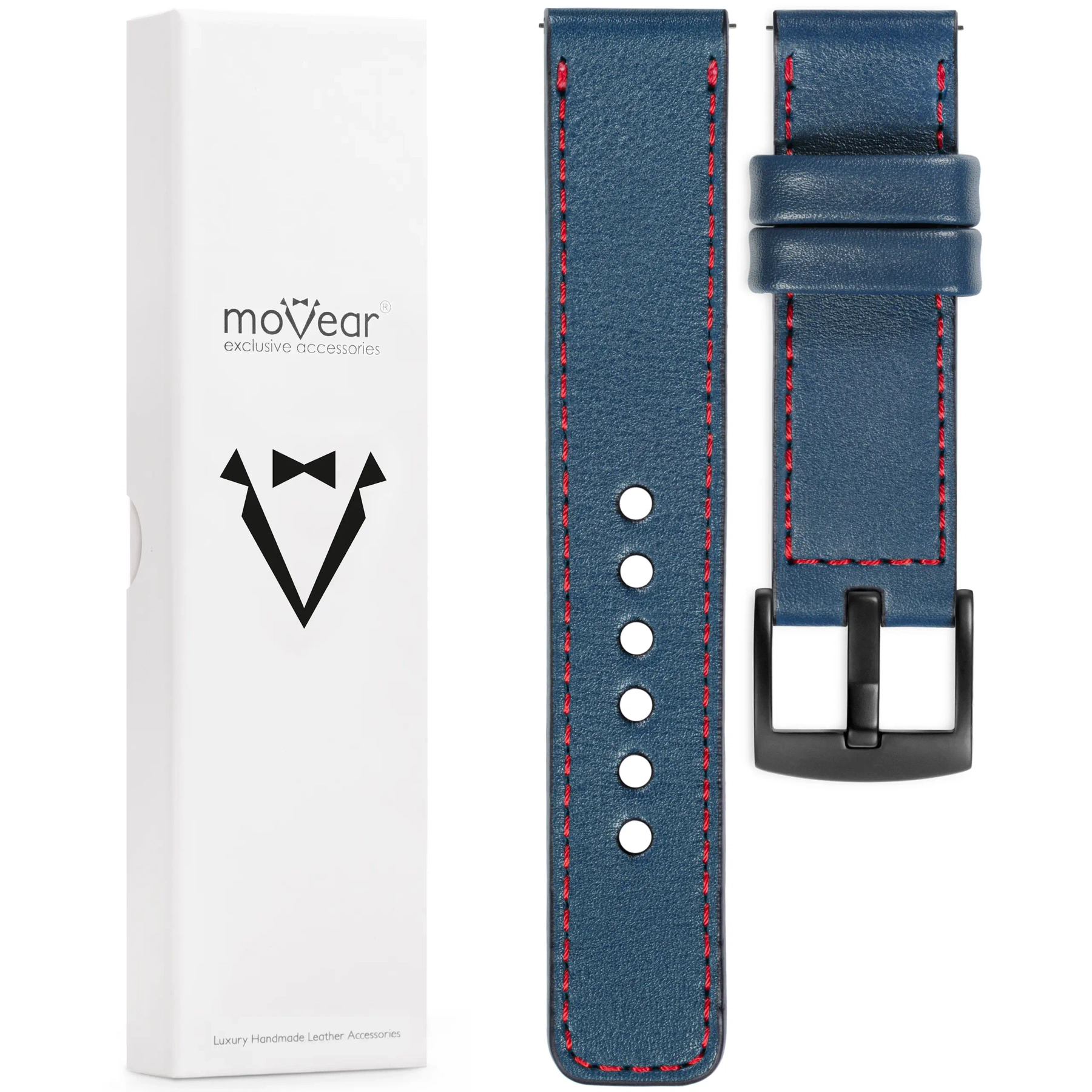 - 1 szt. moVear Prestige C1 - Skórzany pasek szerokości mocowania 26mm, kolor paska Niebieski jeans, czerwone przeszycie