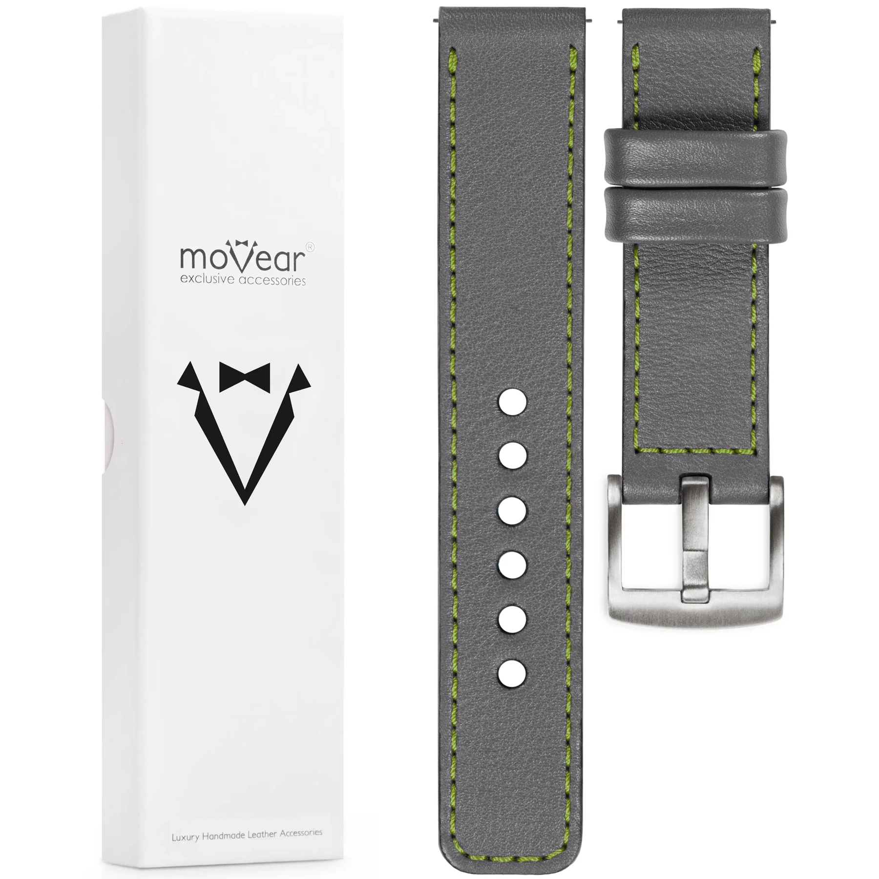 - 1 szt. moVear Prestige C1 - Skórzany pasek szerokości mocowania 24mm, kolor paska Szary, limonkowe przeszycie
