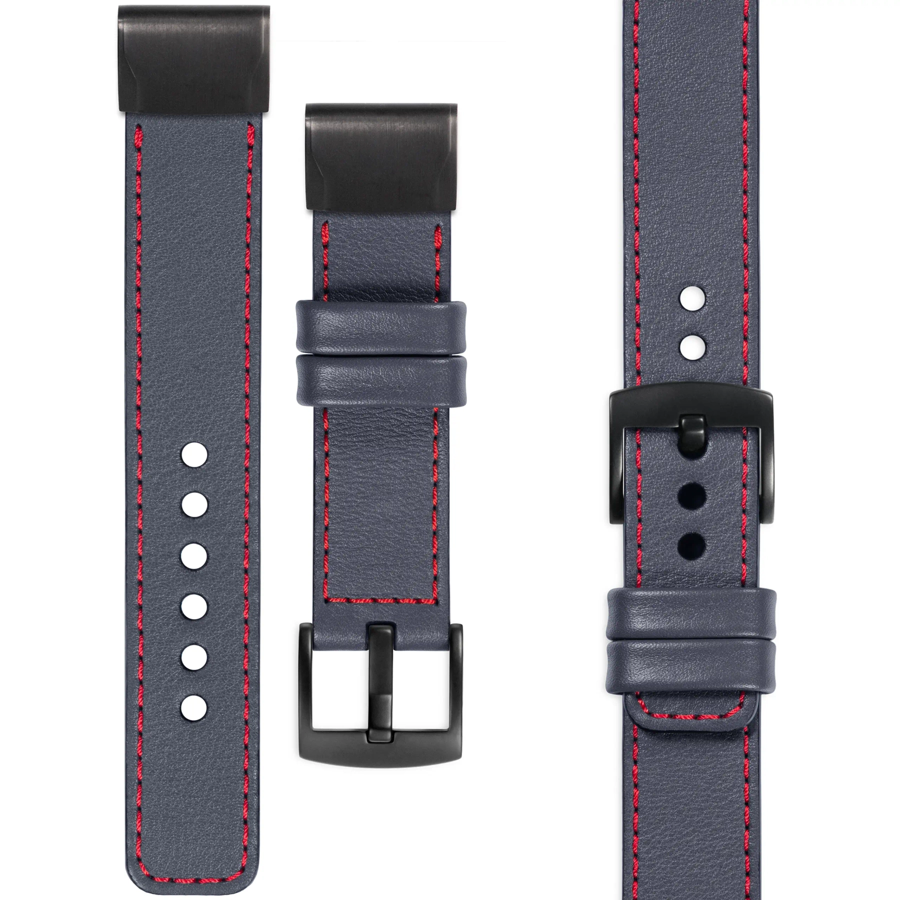 moVear Prestige C1 | Skórzany pasek do Garmin QuickFit 22mm (Fenix / Forerunner / Epix / Instinct / Enduro / Quatix / MARQ - 47/45mm) | Szary stalowy, eleganckie przeszycie kolor Czerwony