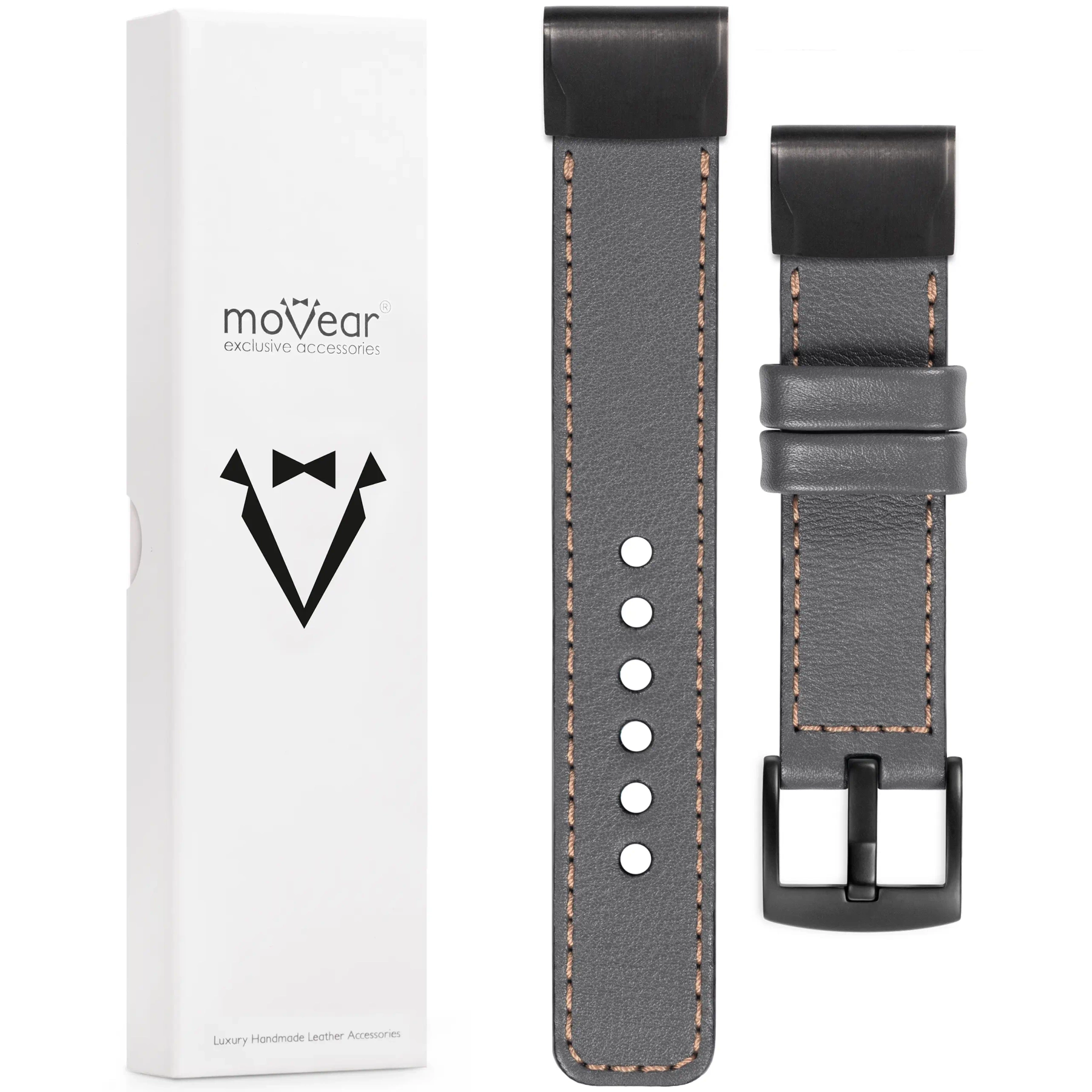 - 1 szt. moVear Prestige C1 Skórzany pasek z adapterem mocowania na Garmin QuickFit 22mm.