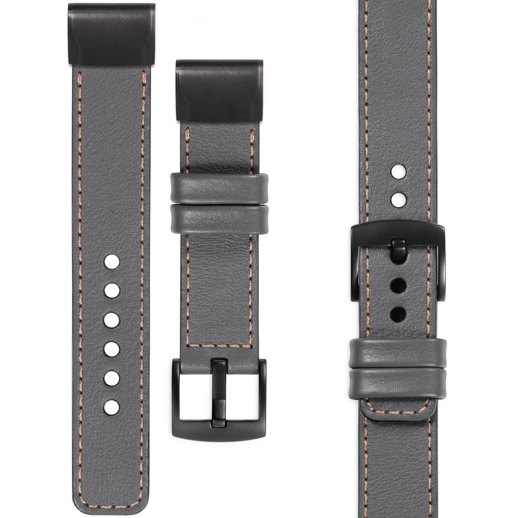 moVear Prestige C1 | Skórzany pasek do Garmin QuickFit 22mm (Fenix / Forerunner / Epix / Instinct / Enduro / Quatix / MARQ - 47/45mm) | Szary, eleganckie przeszycie kolor Różowe złoto