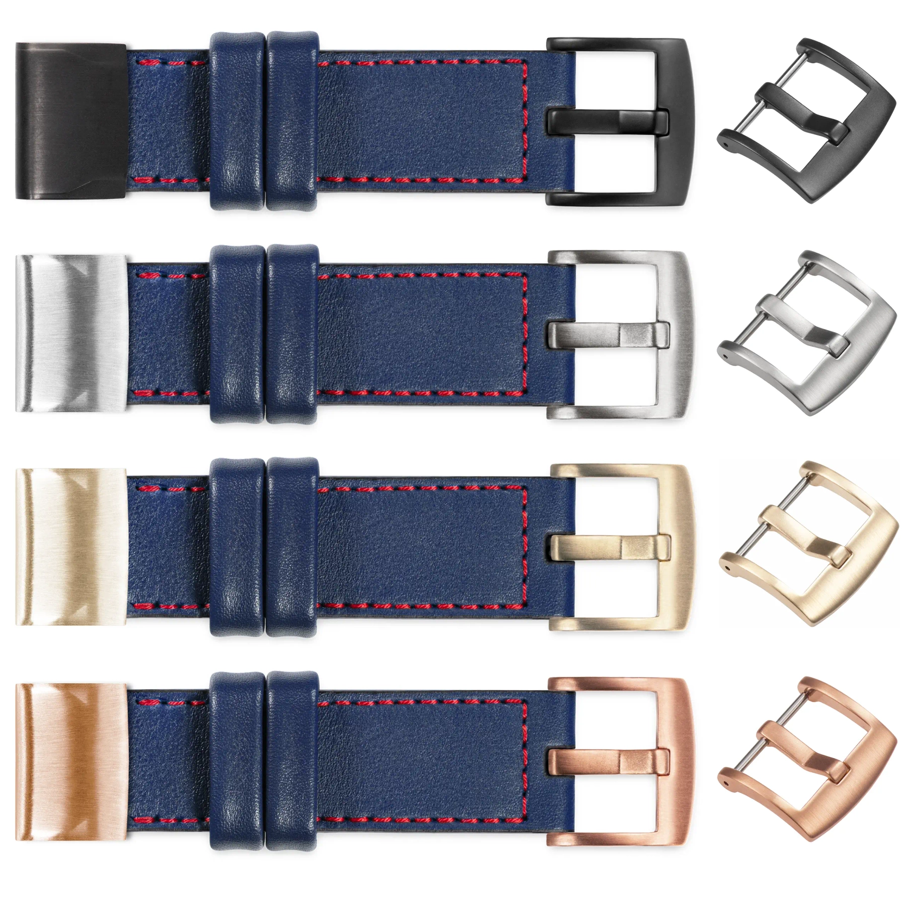 Wykonujemy wysokiej jakości skórzane paski do Garmin QuickFit 22mm (Fenix / Forerunner / Epix / Instinct / Enduro / Quatix / MARQ - 47/45mm) w wielu różnych konfiguracjach. Jeżeli domyślna klamra (Czarny) w pasku Prestige C1 wymaga zmiany na inny kolor - oferujemy następujące opcje: