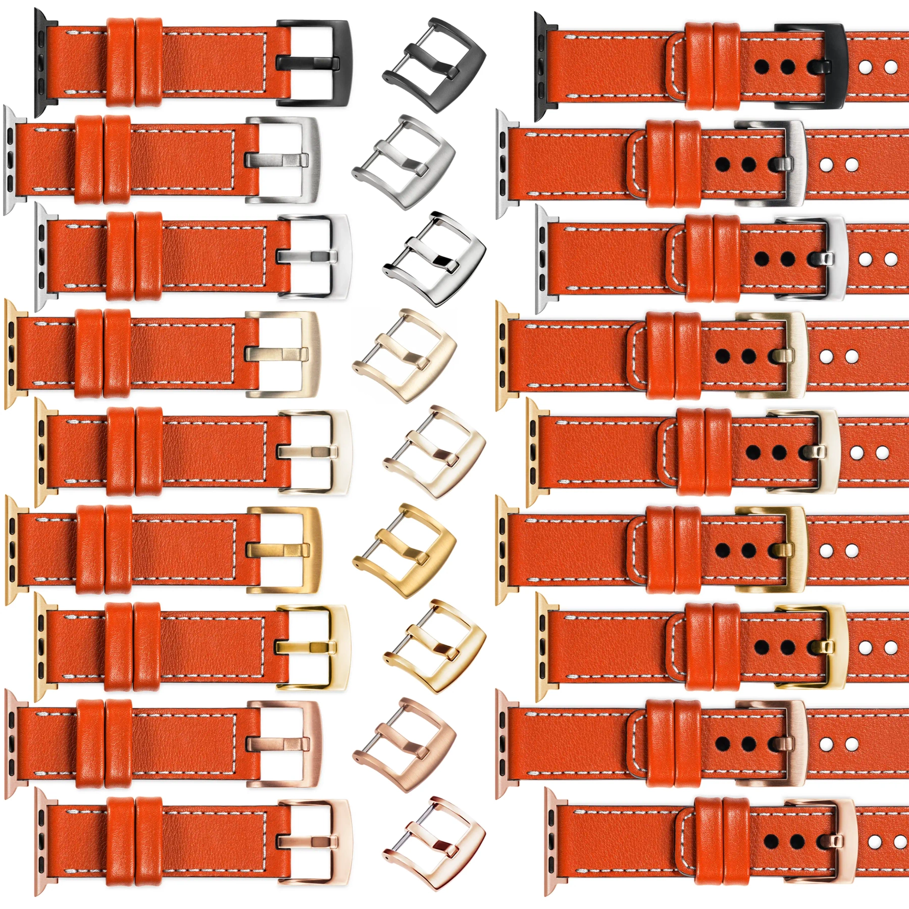 moVear Prestige C1 | Skórzany pasek 20mm do Apple Watch 10 / 9 / 8 / 7 / 6 / 5 / 4 / SE (46/45/44mm) & Ultra (49mm) | Pomarańczowy, eleganckie przeszycie kolor Biały