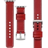 moVear Prestige C1 | Skórzany pasek 20mm do Apple Watch 10 / 9 / 8 / 7 / 6 / 5 / 4 / SE (46/45/44mm) & Ultra (49mm) | Czerwony szkarłatny, eleganckie przeszycie kolor Biały