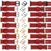 moVear Prestige C1 | Skórzany pasek 22mm do Apple Watch 10 / 9 / 8 / 7 / 6 / 5 / 4 / SE (42/41/40mm) | Czerwony szkarłatny, eleganckie przeszycie kolor Różowe złoto