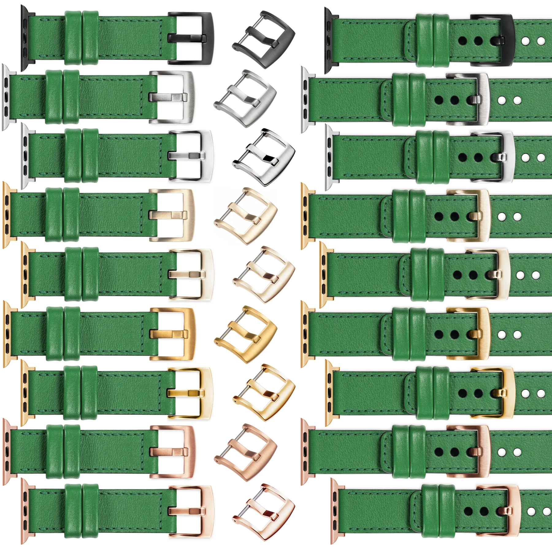 moVear Prestige C1 | Skórzany pasek 20mm do Apple Watch 10 / 9 / 8 / 7 / 6 / 5 / 4 / SE (42/41/40mm) | Zielony, eleganckie przeszycie kolor Ciemnozielony