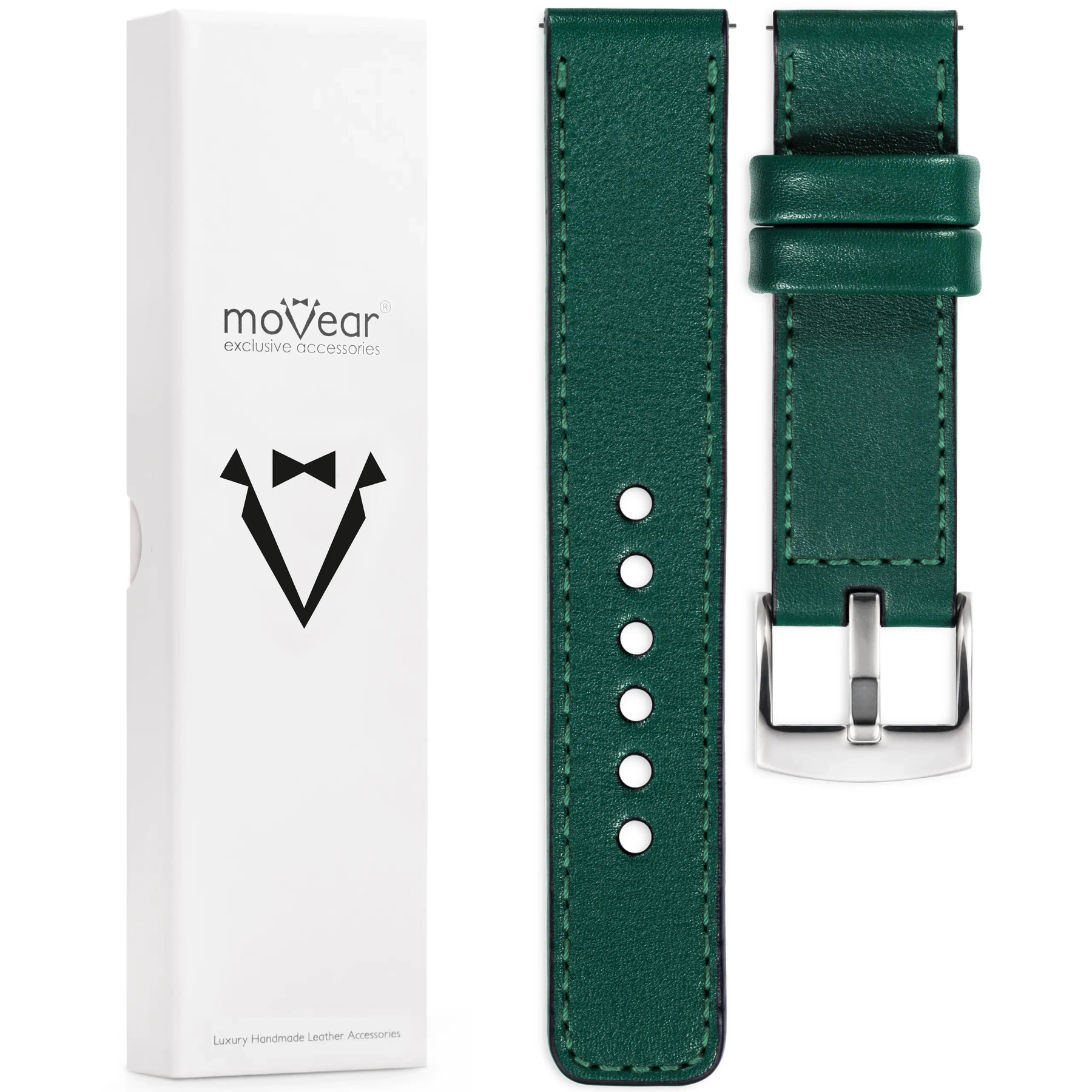 • 1 szt. moVear Prestige C1 - Skórzany pasek szerokości mocowania 20mm, kolor paska Zielony butelkowy, ciemnozielone przeszycie