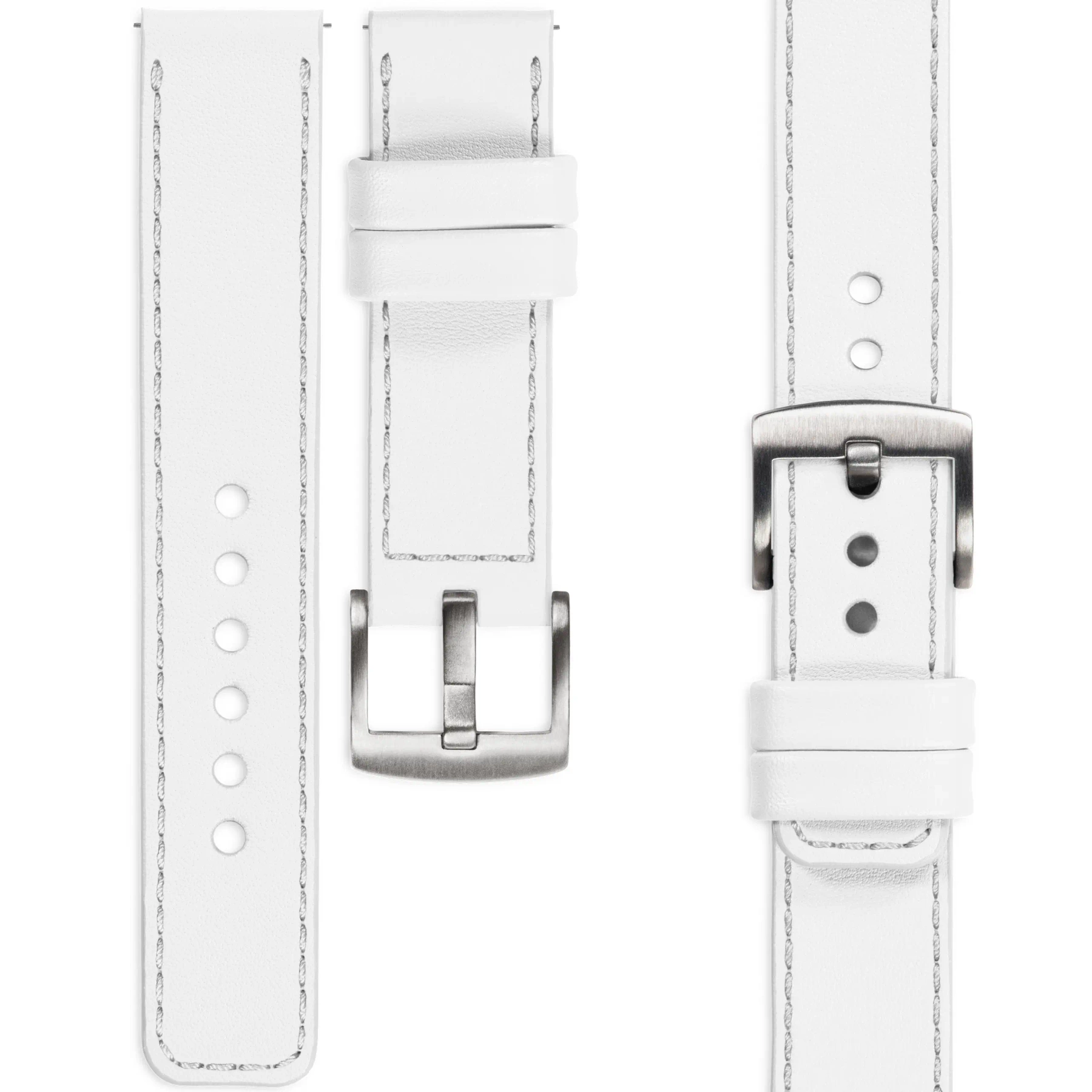 moVear Prestige C1 Skórzany pasek 18mm do zegarka / smartwatcha | Biały, eleganckie przeszycie kolor Srebrny