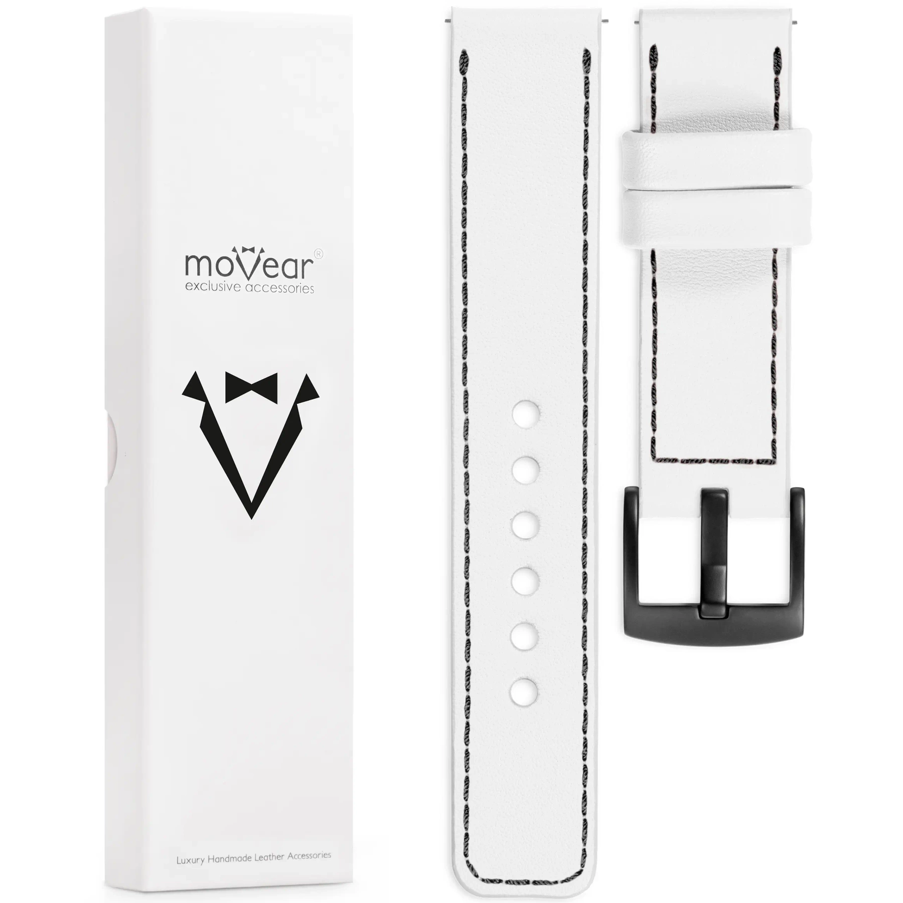 - 1 szt. moVear Prestige C1 - Skórzany pasek szerokości mocowania 20mm, kolor paska Biały, czarne przeszycie
