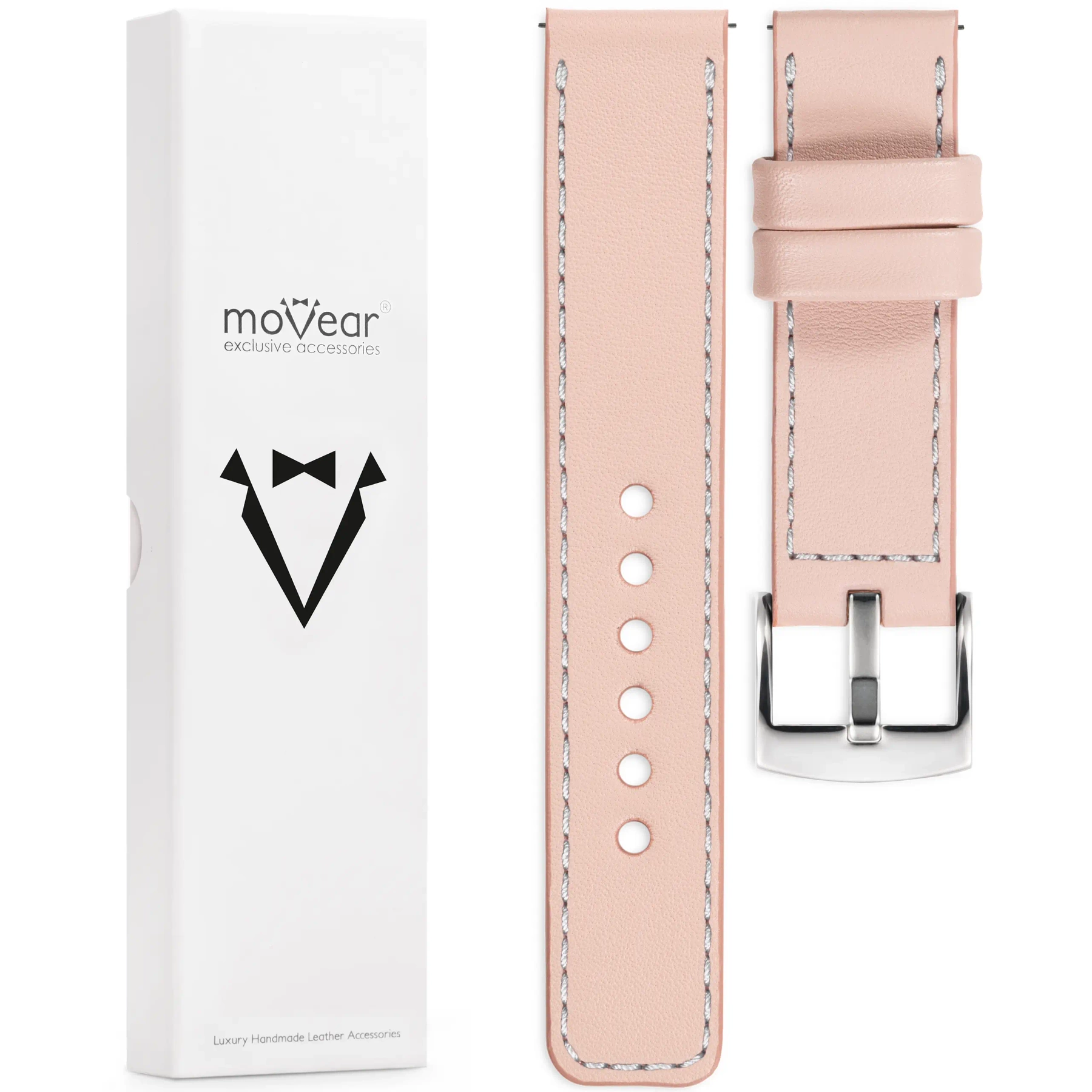 • 1 szt. moVear Prestige C1 - Skórzany pasek szerokości mocowania 20mm, kolor paska Różowy cielisty, srebrne przeszycie