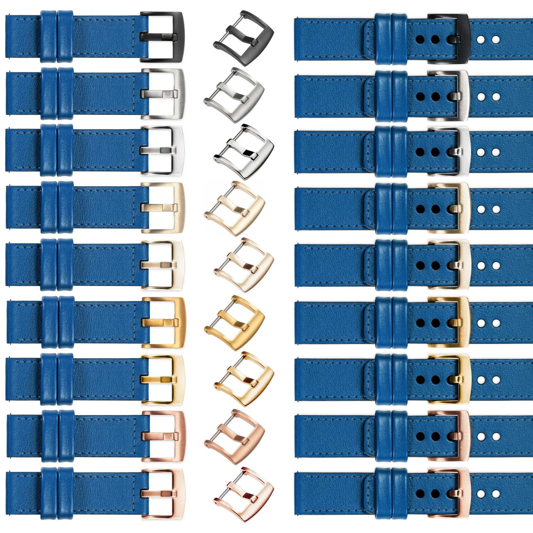 - 1 szt. moVear Prestige C1 - Skórzany pasek szerokości mocowania 18mm, kolor paska Niebieski, przeszycie Niebieski