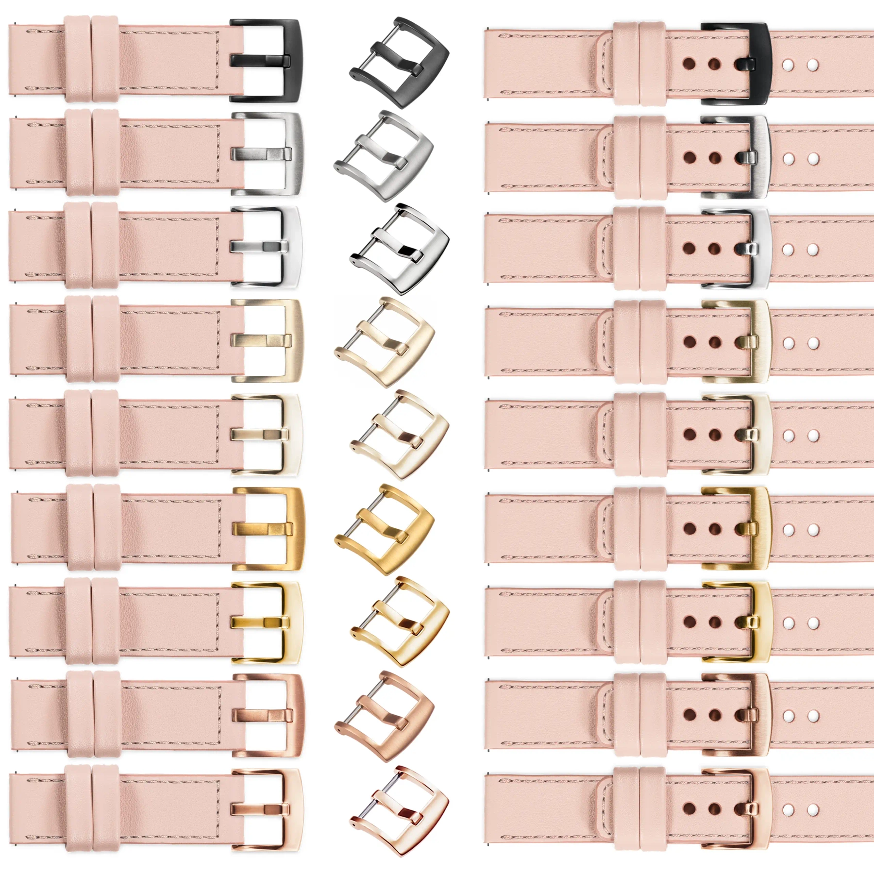 - 1 szt. moVear Prestige C1 - Skórzany pasek szerokości mocowania 18mm, kolor paska Różowy cielisty, przeszycie Różowy cielisty