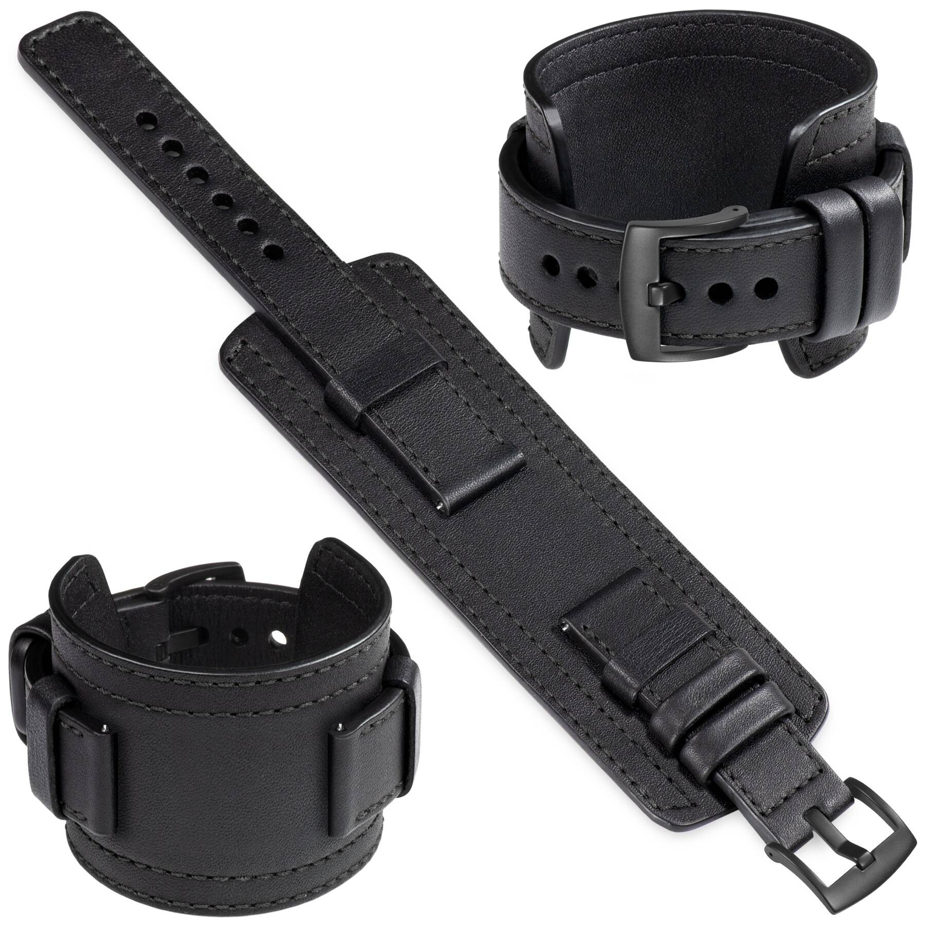 moVear Prestige CW1 szeroki skórzany pasek 22mm z podkładką do zegarka | Czarny, eleganckie przeszycie kolor Czarny