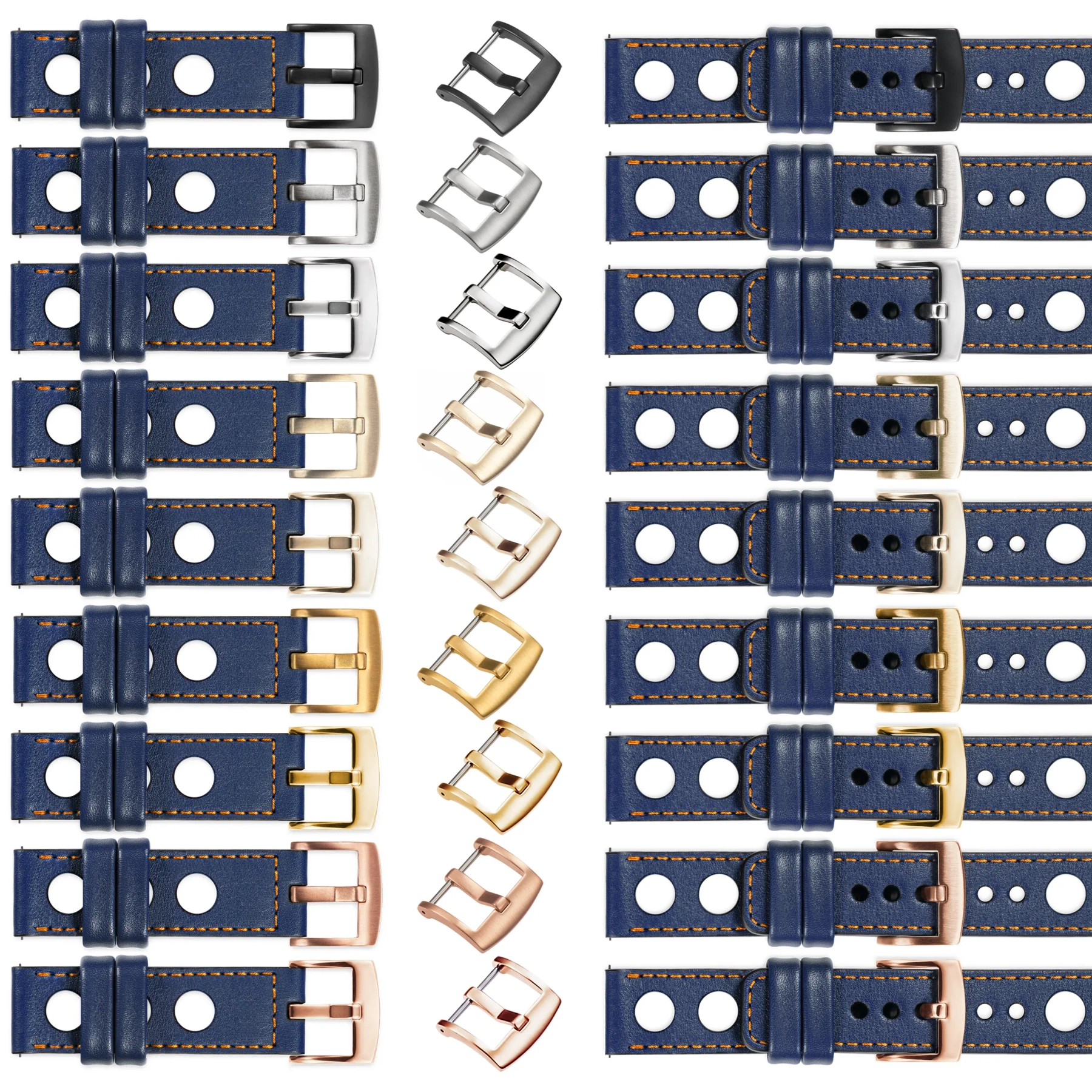 moVear Prestige R1 (Rally) Skórzany pasek 24mm do zegarka / smartwatcha | Granatowy, eleganckie przeszycie kolor Pomarańczowy