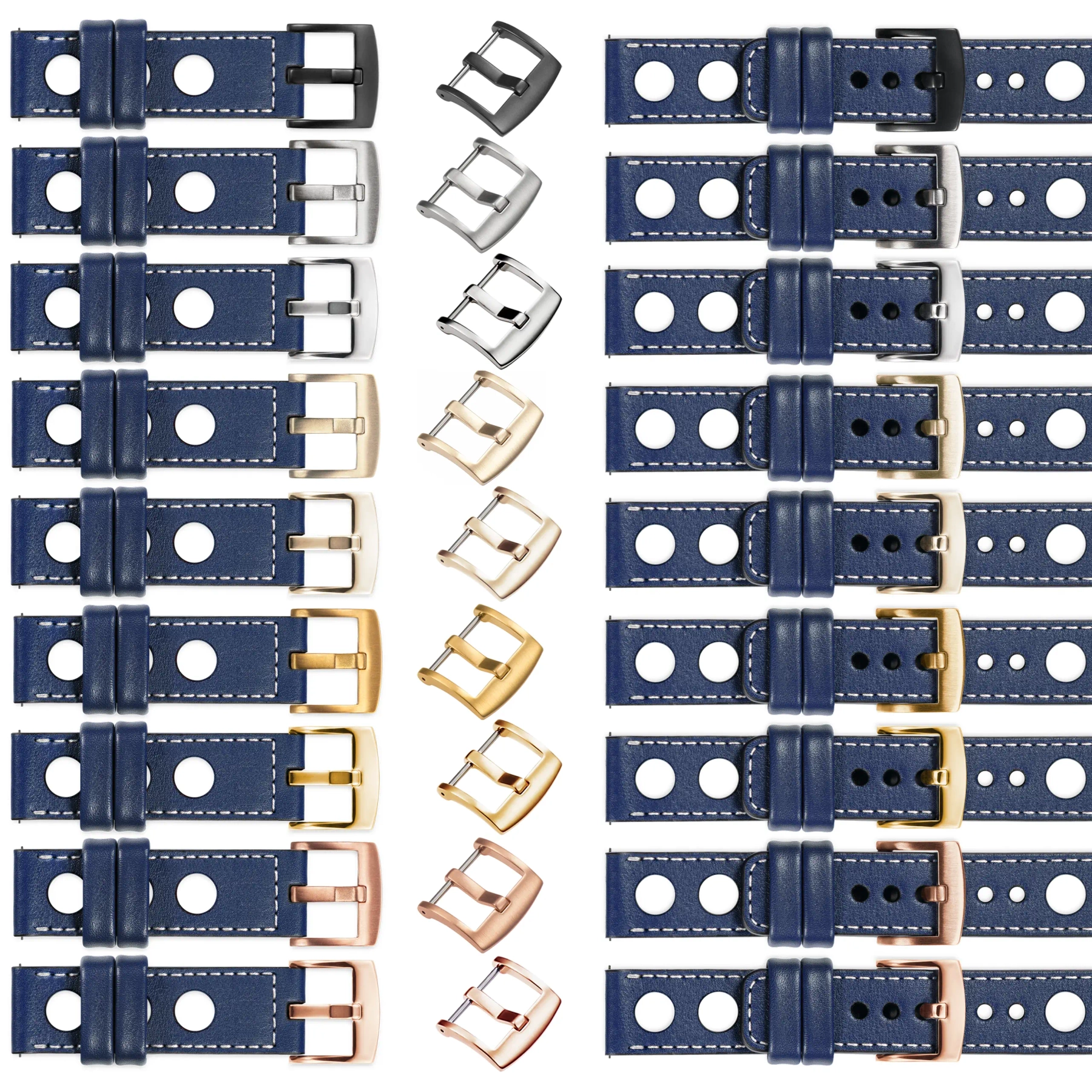 moVear Prestige R1 (Rally) Skórzany pasek 26mm do zegarka / smartwatcha | Granatowy, eleganckie przeszycie kolor Biały