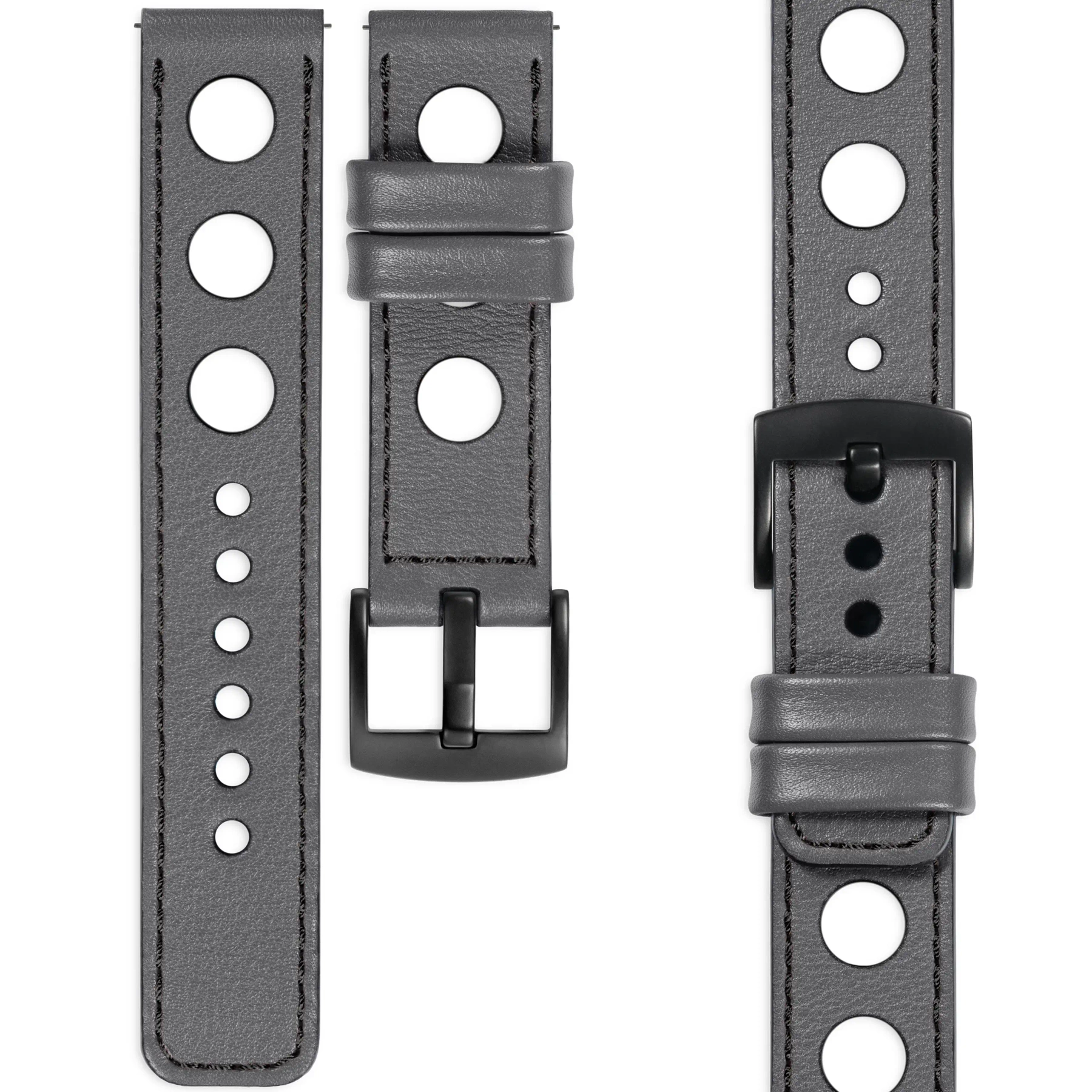 moVear Prestige R1 (Rally) Skórzany pasek 18mm do zegarka / smartwatcha | Szary, eleganckie przeszycie kolor Czarny