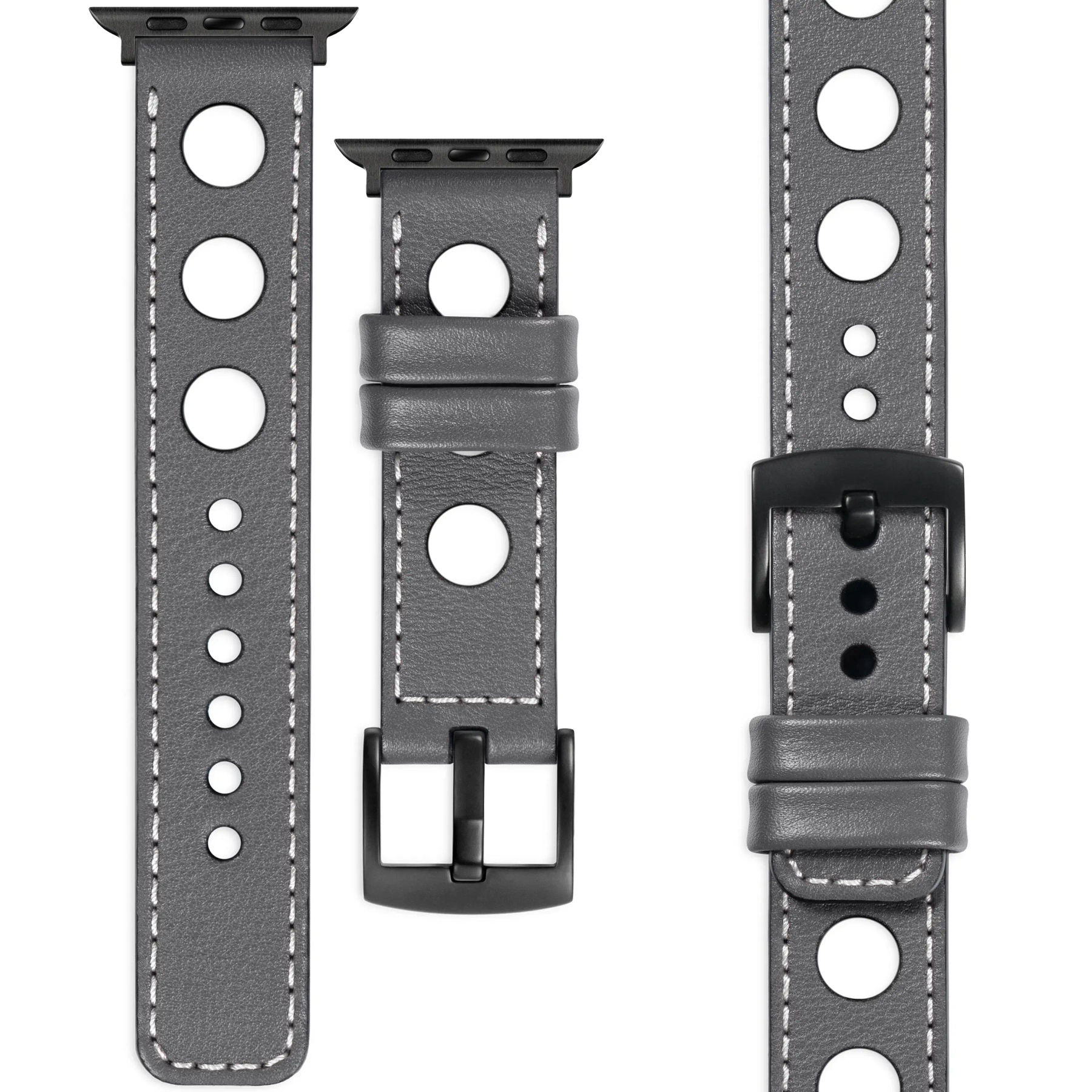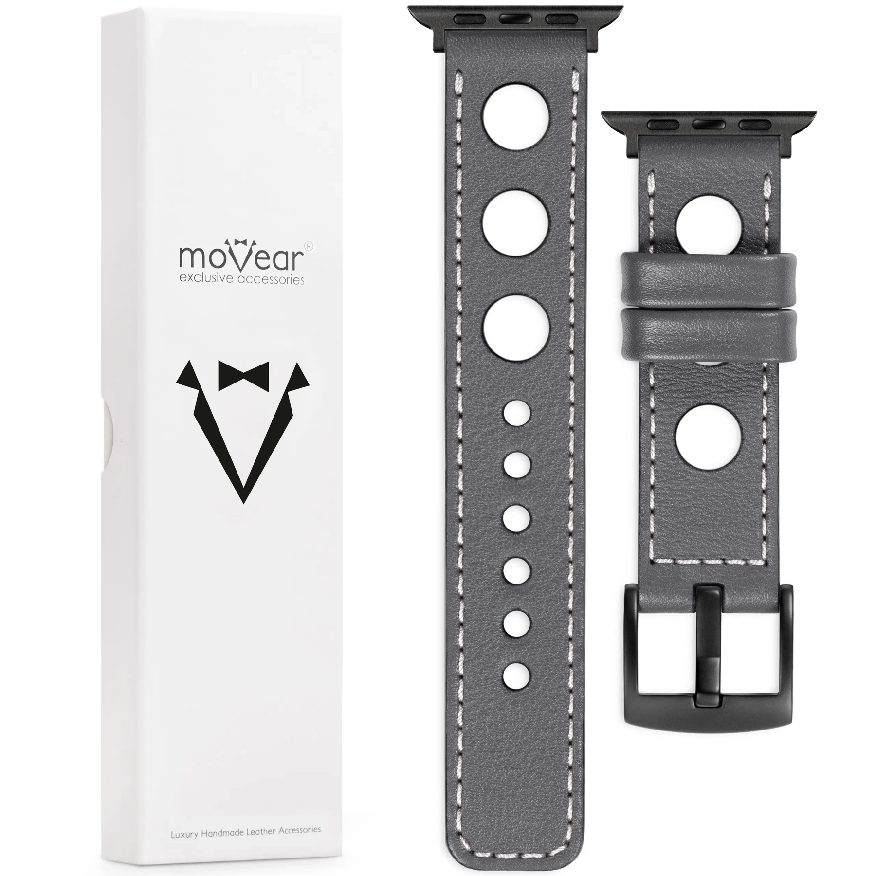 moVear Prestige R1 | Skórzany pasek 22mm do Apple Watch 10 / 9 / 8 / 7 / 6 / 5 / 4 / SE (42/41/40mm) | Szary, eleganckie przeszycie kolor Biały
