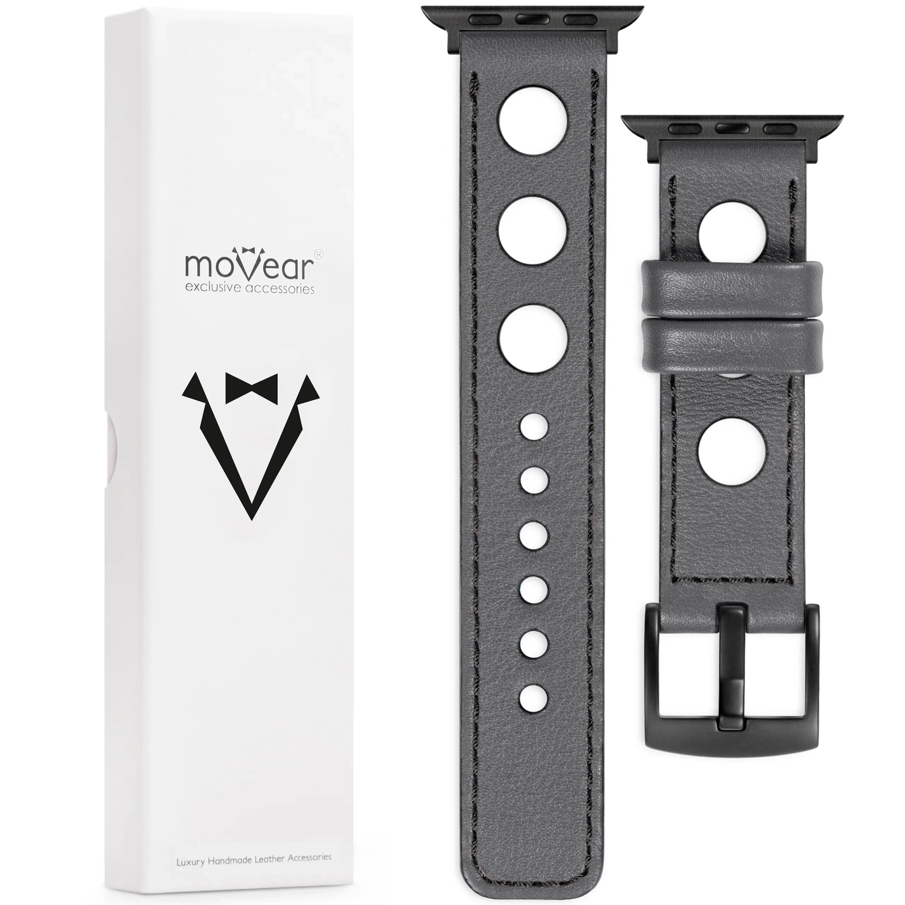 moVear Prestige R1 | Skórzany pasek 22mm do Apple Watch 10 / 9 / 8 / 7 / 6 / 5 / 4 / SE (46/45/44mm) & Ultra (49mm) | Szary, eleganckie przeszycie kolor Czarny