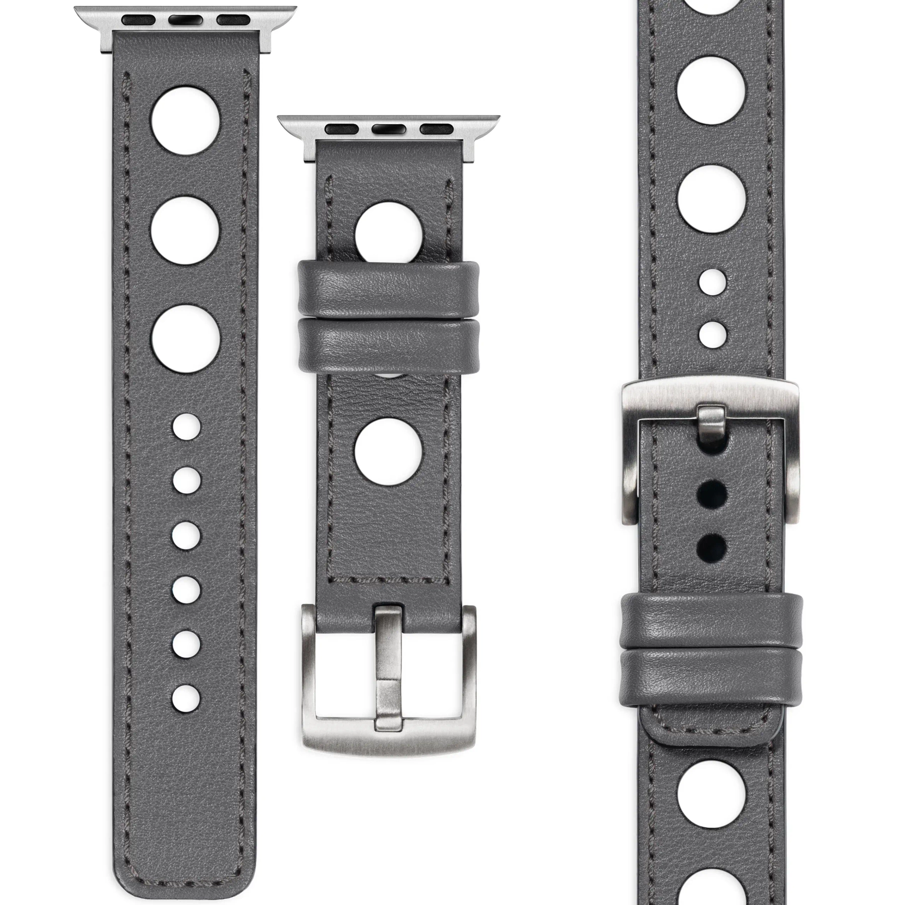 moVear Prestige R1 | Skórzany pasek 22mm do Apple Watch 10 / 9 / 8 / 7 / 6 / 5 / 4 / SE (46/45/44mm) & Ultra (49mm) | Szary, eleganckie przeszycie kolor Grafitowy