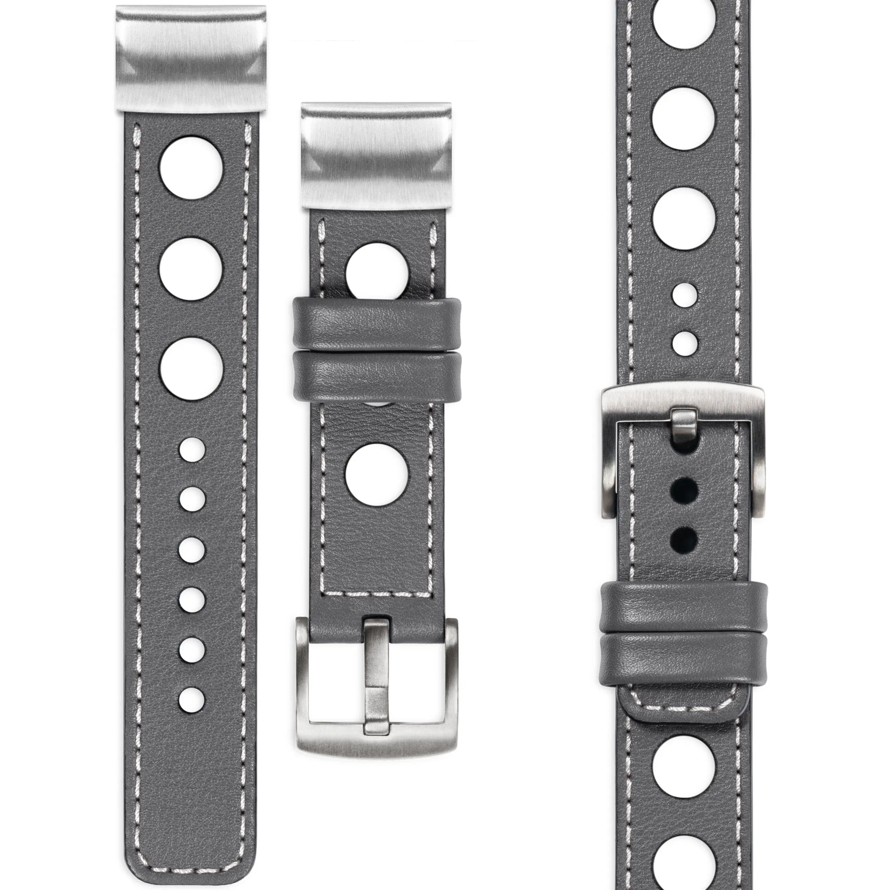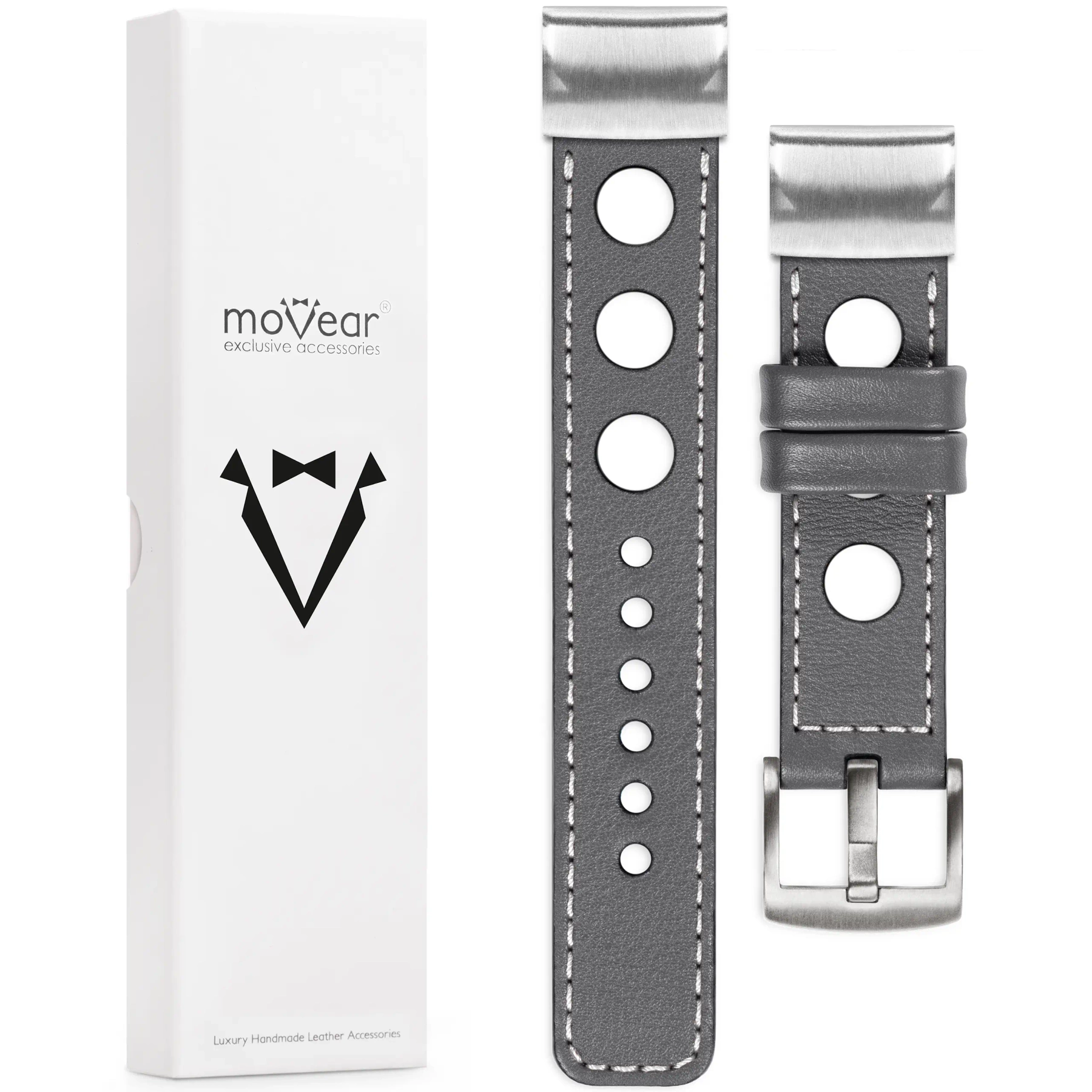 moVear Prestige R1 | Skórzany pasek do Garmin QuickFit 22mm (Fenix / Forerunner / Epix / Instinct / Enduro / Quatix / MARQ - 47/45mm) | Szary, eleganckie przeszycie kolor Biały