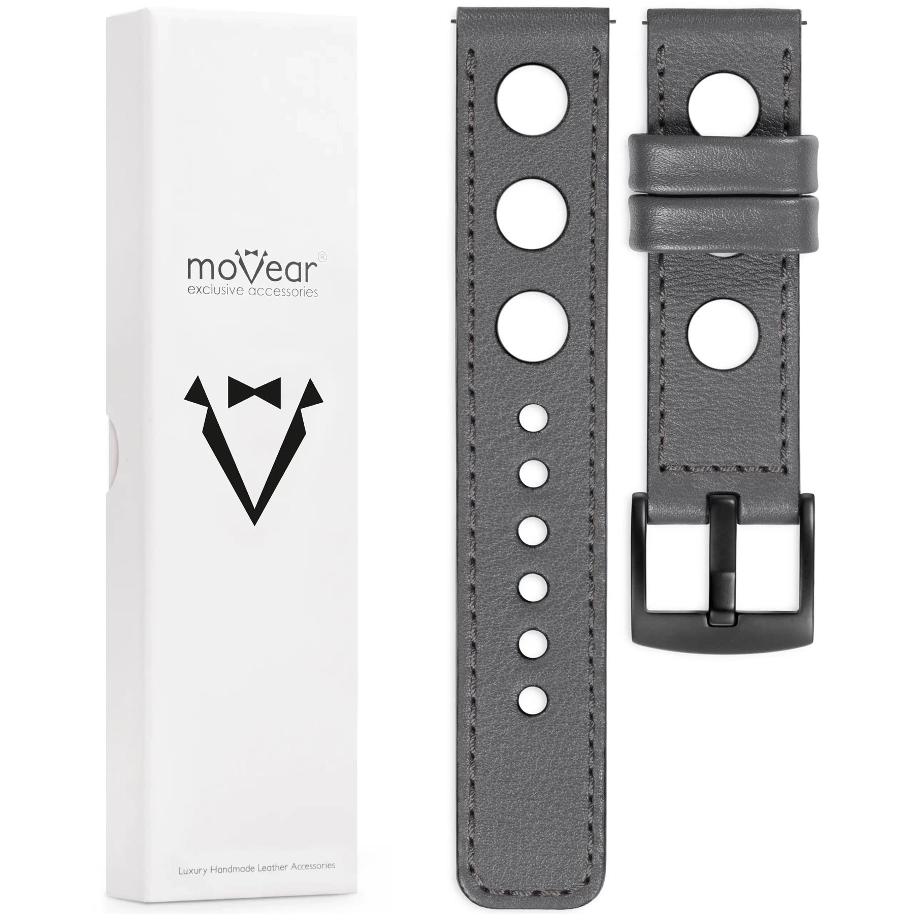 moVear Prestige R1 | Skórzany pasek 18mm do Garmin Vivoactive 4S, Venu 3S/2S, Vívomove 3S | Szary, eleganckie przeszycie kolor Grafitowy