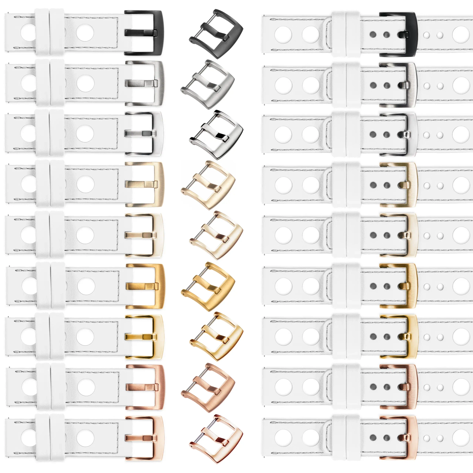moVear Prestige R1 (Rally) Skórzany pasek 18mm do zegarka / smartwatcha | Biały, eleganckie przeszycie kolor Srebrny