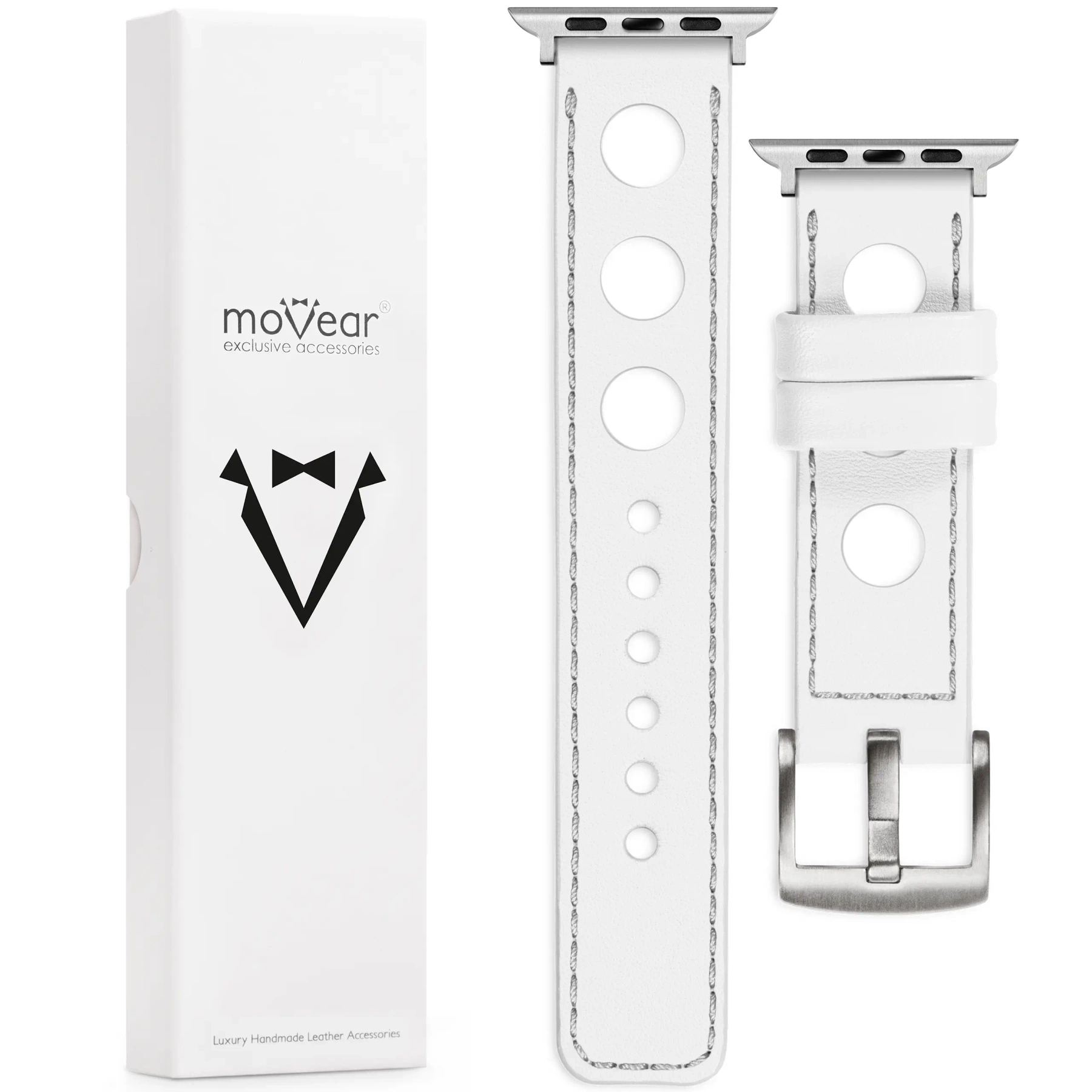 - 1 szt. moVear Prestige R1 Pasek szerokości mocowania 22mm, Biały, srebrne przeszycie