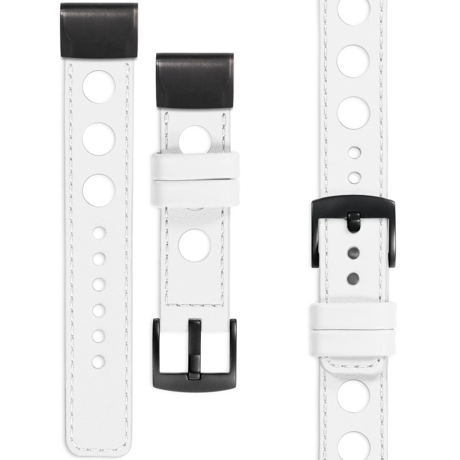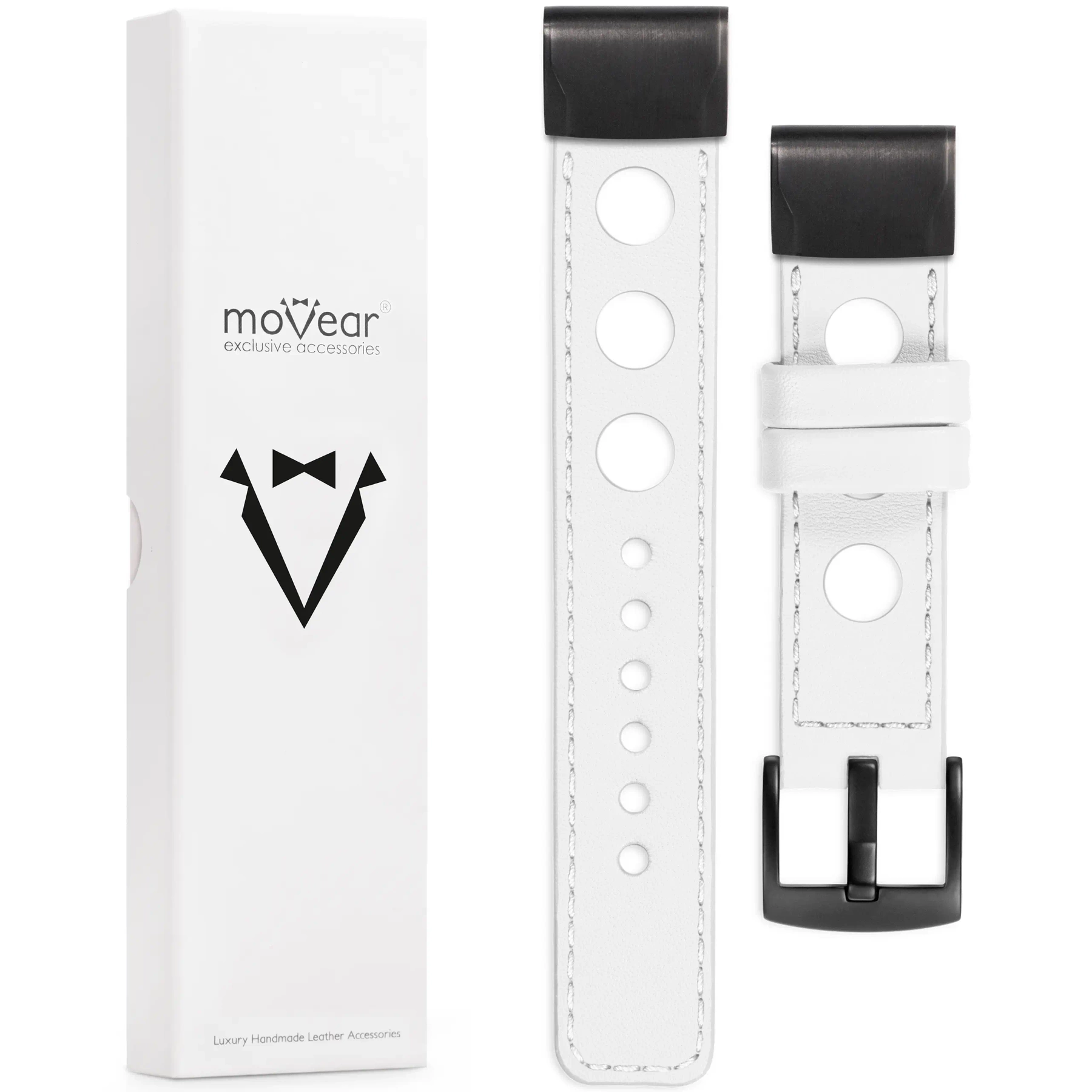 moVear Prestige R1 | Skórzany pasek do Garmin QuickFit 20mm (Fenix / Instinct - 43/42/40mm) | Biały, eleganckie przeszycie kolor Biały