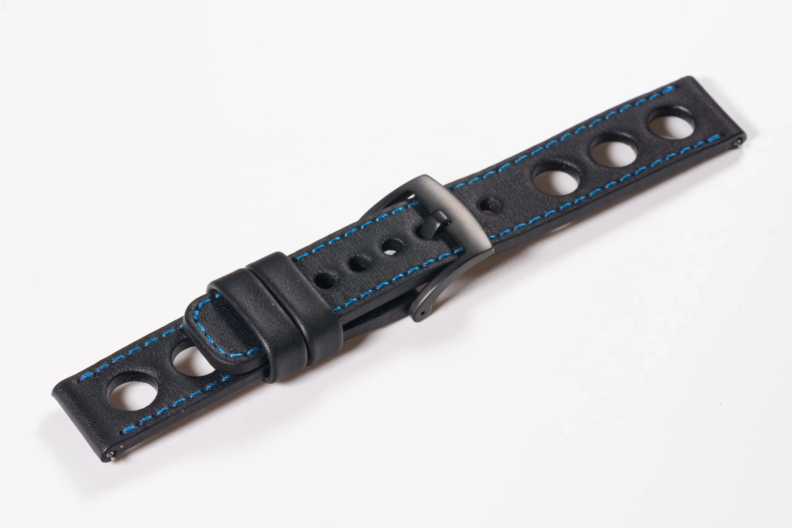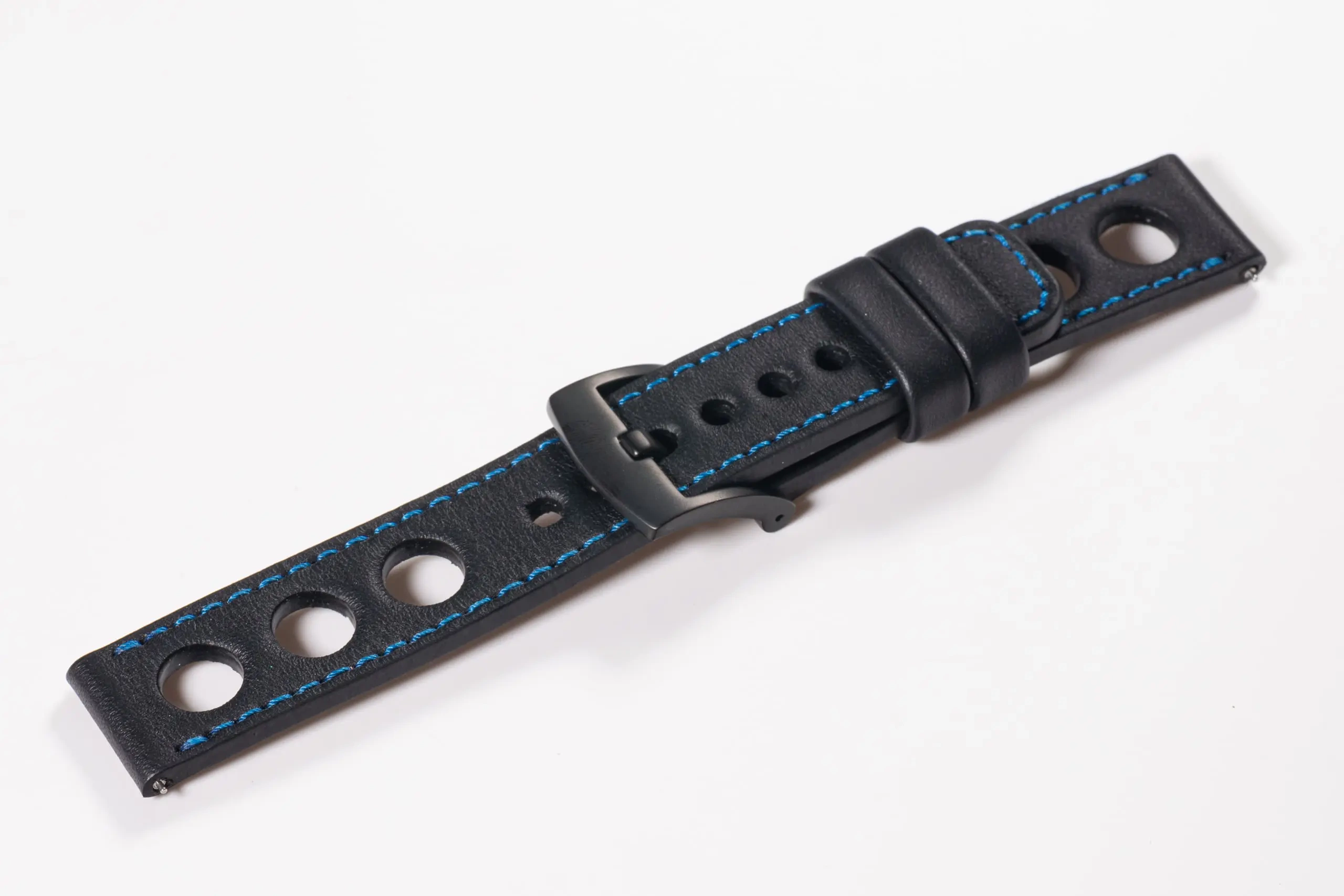 Skórzany pasek 20mm do zegarka / smartwatcha przeszycie niebieskie