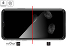 - Wypozycjonuj szkło hartowane nad ekranem, a następnie ostrożnie połóż je na wyświetlaczu. Zwróć uwagę na otwory funkcyjne.